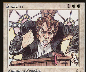 And like with the whole thing with the set of blood frolicked priests, you know your playing magic the gathering, right, the game that was a major target of the satanic panic. The game where you can summon a demon, give your creatures "Unholy Strength", take a "Contract from Below". That magic the gathering set with all the blood-frocked priests basically already exists, it's called The Dark, and it is